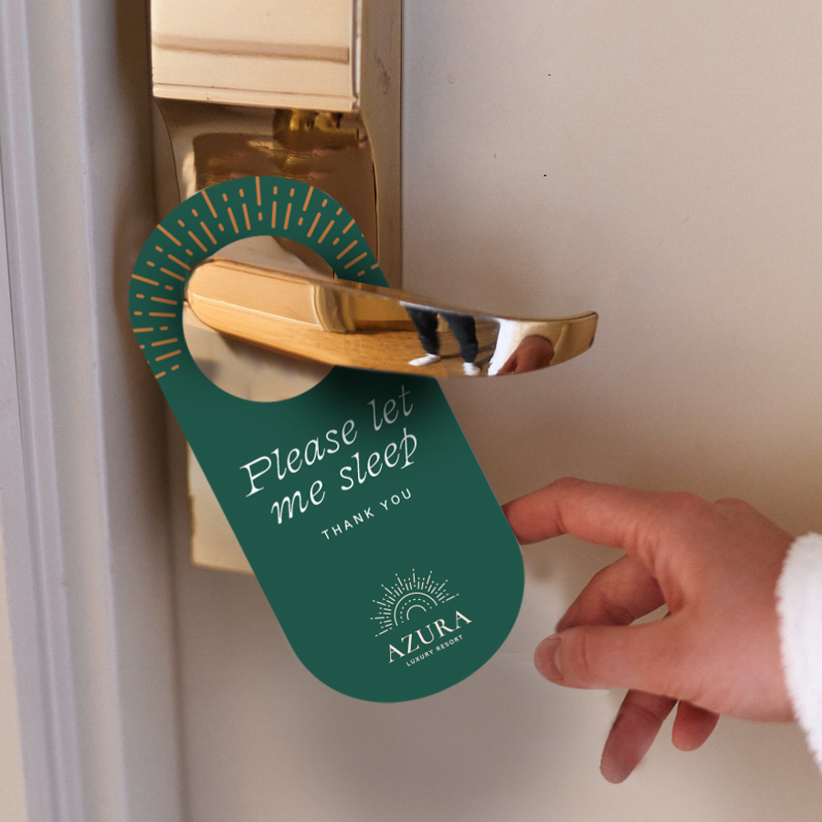 Designed to fit standard 60mm door knobs, our custom door hangers come in convenient packs of 50, making them perfect for hotels and events.
