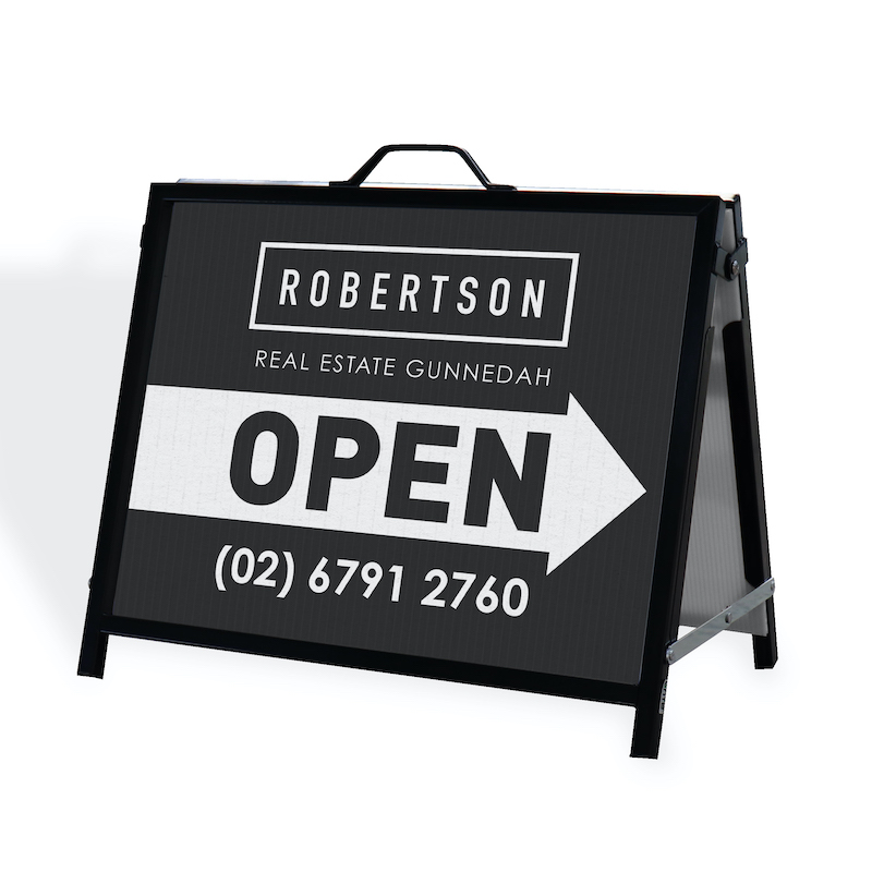 Our Real Estate A-Frames are a great alternative to the Endurosigns A-Frame that gives the real estate industry the flexibility to use the same frame with interchangeable messages. Perfect for attracting the attention of potential clients to auctions, open houses, inspections and any other sales event!